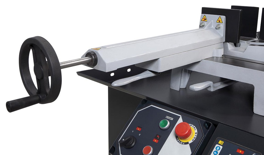 - Vodilna kolesa velikega premera in natančno tridelno vodenje trdega metala zagotavljajo dolgo življenjsko dobo žaginega lista in natančnost žaganja.