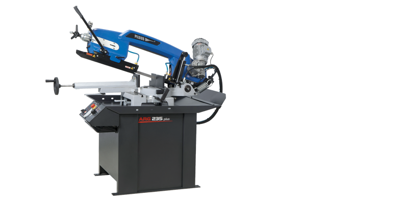 Univerzalna tračna žaga ARG 235 plus je ocenjena za splošno uporabo v neprekinjenih proizvodnih obratih in v delavnicah (delo na ključavnicah, vzdrževanje). Žagin list 27 x 0,9 mm je izdelan v številnih različicah in omogoča žaganje najrazličnejših materialov, vključno z nerjavečim jeklom ali orodnim jeklom. Dviganje ročne žage je ročno; podajanje na rez poteka s težo roke, z možnostjo neprekinjene regulacije s pomočjo olajševalnega ventila za olje. Po končanem žaganju se pogon tračne žage samodejno izklopi. Za lažje dvigovanje roke je stroj opremljen z nastavljivo napetostno vzmetjo, ki omogoča nastavitev optimalne sile, ki je potrebna za dvig roke glede na značilnosti materiala, ki ga je treba žagati.