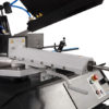 Najnovejši koncept vlivanja roke s votlinami je opremljen s tekalnimi kolesi s povečanim premerom. Večji premer koles zagotavlja manjše upogibne napetosti tračne žage. Vse to zagotavlja izjemno togost celotnega sistema, dolgo življenjsko dobo tračnih žag in največjo natančnost reza. Votli deli roke vsebujejo vse napeljave in hladilne tekočine, kar jih ščiti pred poškodbami. Novi koncept roke prav tako močno poenostavlja menjavo žaginega lista ali čiščenje notranjosti roke – samo odprete tečajni pokrov in ta ostane v zgornjem položaju. Poleg ustvarjanja povsem novega dizajna roke, izvedli smo tudi veliko tehničnih prilagoditev in sprememb, da smo izboljšali kakovost, udobje uporabnika in življenjsko dobo stroja. Poleg tega ima dvig roke zdaj tudi ročico za nastavitev višine za ergonomsko delovanje. Kot dodatno opremo lahko uporabite krtačo za čiščenje tračne žage, sinhrono gnano s pogonskega kolesa.
